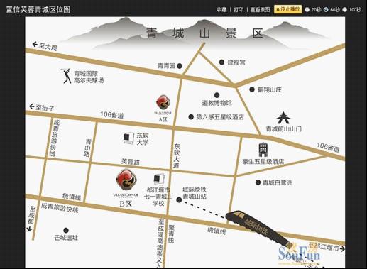 置信芙蓉青城占地104亩,地处风景优美的国家AAAAA级风景区——青城山,距成都60公里左右,交通十分便捷,成灌高速、成青快速通道,成青快铁都能直达项目。
