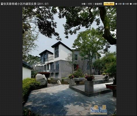 芙蓉青城共分三期,是由MINI联排别墅、望山小户型度假别墅以及水系正中央的院落式度假别墅所组成的纯别墅高档社区。联排别墅、合院别墅享受小区最好的水景和园林;望山别墅面山而立,坐拥整个青城山全貌。整个社区最大限度的与青城山水融为一体,营建出近可观水,远可看山的优美格局。