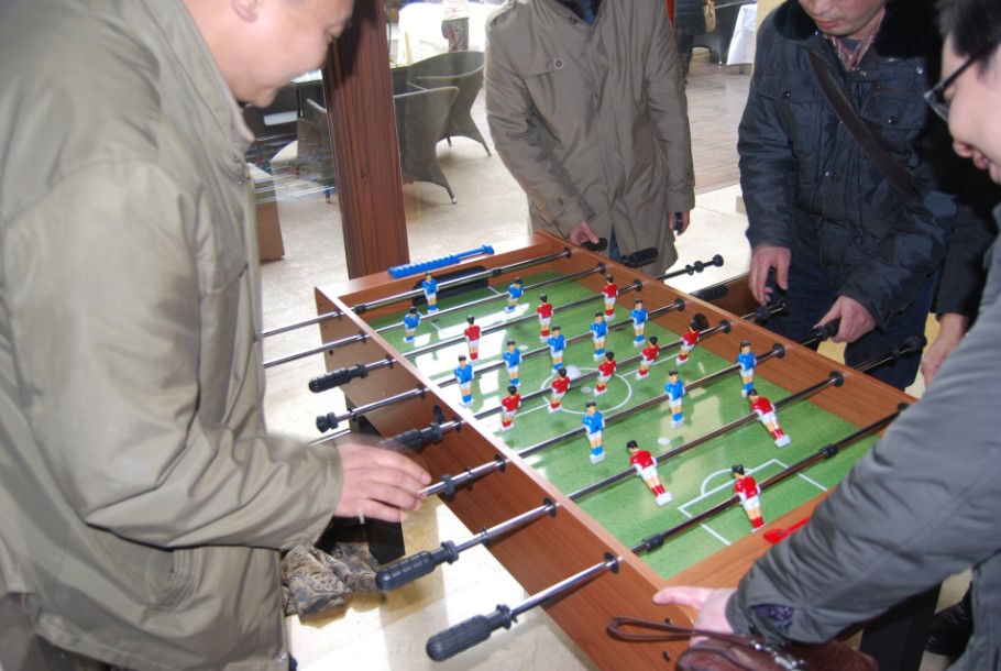 足球永远是男子汉的最爱,男老师们围在一起,开始了激烈的比赛。