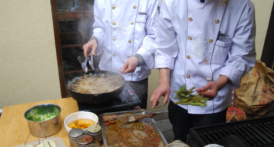 烧烤师傅正在为大家准备香喷喷的烧烤。