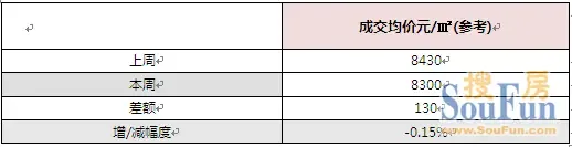 一周房价播报:上周住宅成交均价8300元 环比降0.15%