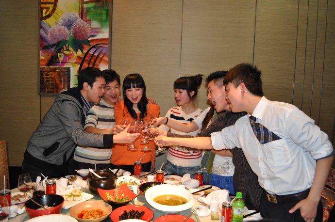 齐声喝彩,共同干杯!