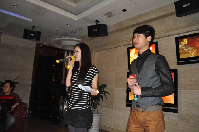 英俊潇洒的男主持:吴浪兄;闭月羞花的女主持:晓慧MM