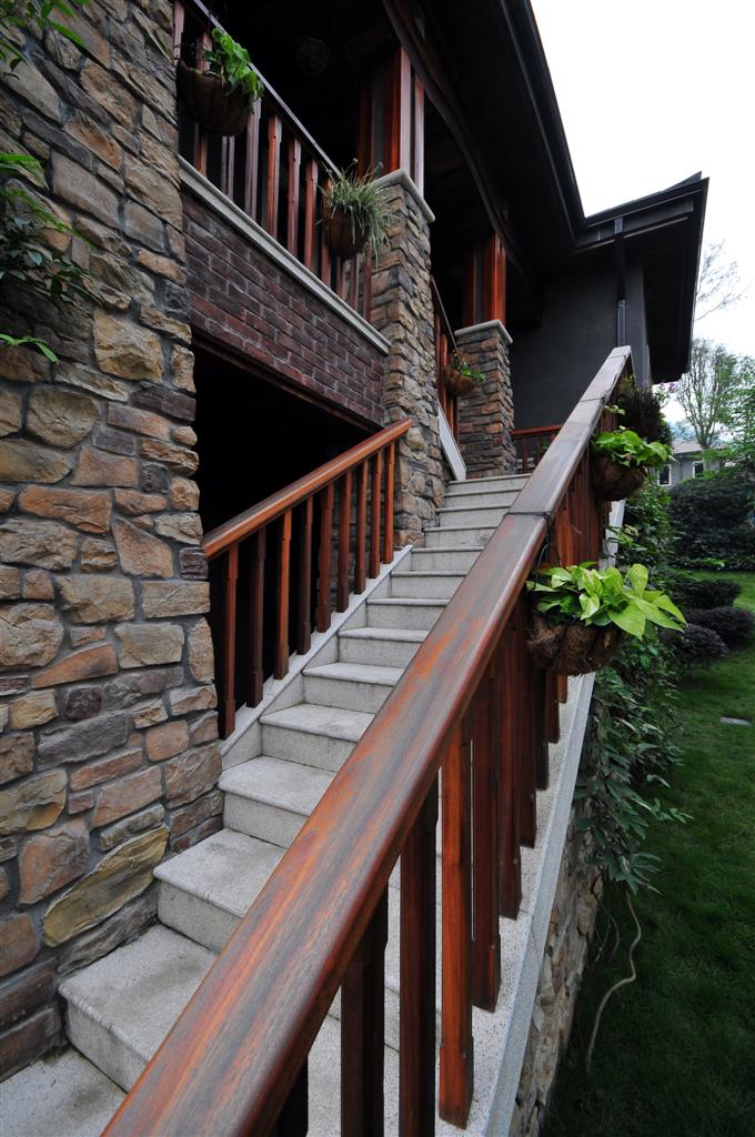 立面风格选取了典型的北美Rocky Mountain(落基山)山地别墅风格,选材大量原木山石等适合山地建筑的自然元素,体现内敛至极的大气尊贵;